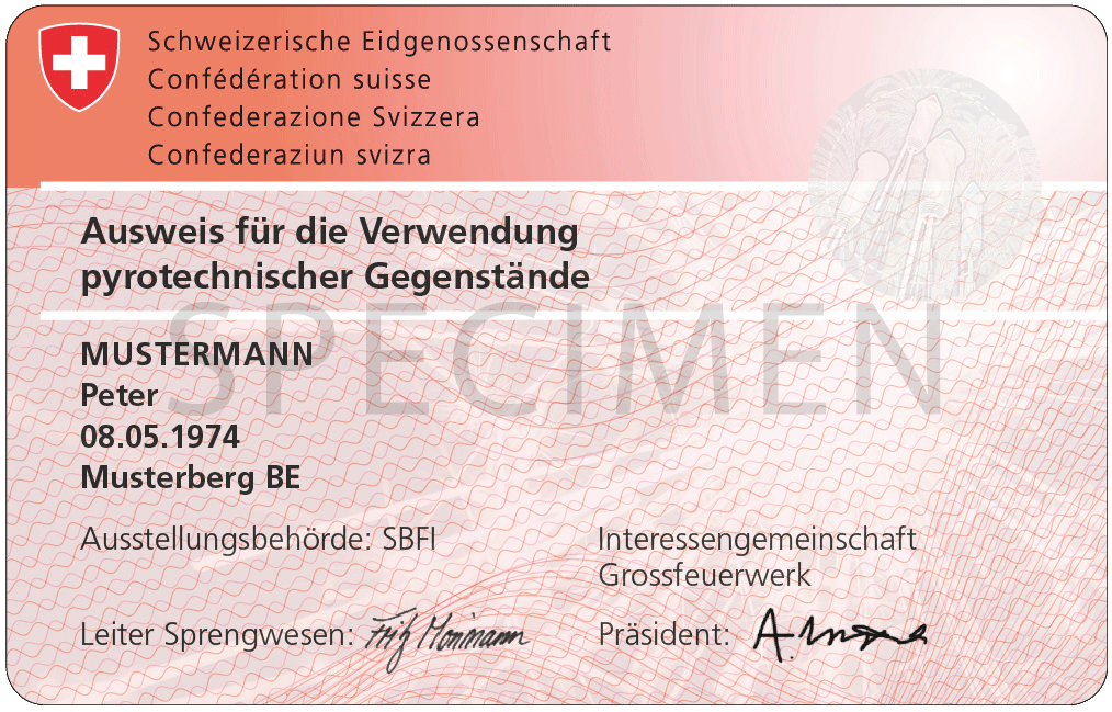 Die Berechtigung FWA erlaubt ein abbrennen von bis zu 50 kg NEM und einem Kaliber bis 75 mm (3 Zoll). Die Bewilligung FWB hat keine Gewichtslimitierung. Für die drei erwähnten Berechtigungen braucht es eine spezielle Ausbildung mit Prüfung.